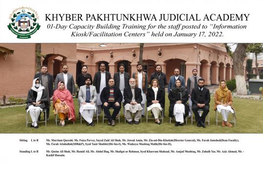 خیبر پختونخوا جوڈیشل اکیڈمی پشاور میں صوبے کے عدالتوں میں قائم دفترمعلومات کومزید فعال بنانے کےلئے اس کے عملے کو تربیت دینے کا سلسلہ شروع ہو گیا ہے ۔