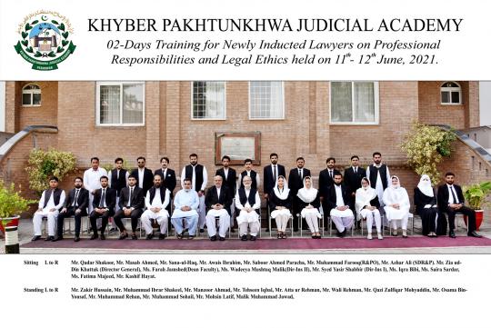 خیبر پختونخوا جوڈیشل اکیڈمی پشاور میں صوبے کے مختلف اضلاع سے تعلق رکھنے والے نوجوان وکلاءکےلئے "پیشہ وارانہ ذمہ داریاں اور قانونی اخلاقیات  " کے موضوع پر دو روزہ  تربیتی پروگرام کا آغاز  ہو گیا ہے ۔