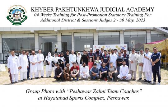 The Academy arranged a sports day for the participants of “Post-Promotion Statutory Training for Additional District & Sessions Judges” on May 25, 2023 at Hayatabad Sports Complex. Dean Faculty and Directors of the Academy accompanied the participants.