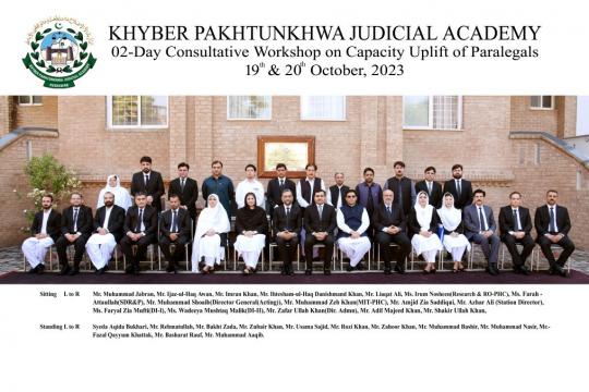 Khyber Pakhtunkhwa Judicial Academy organized two days consultative workshop on capacity uplift of paralegals.
