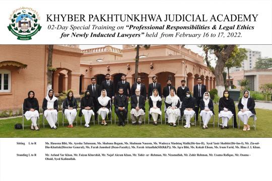 Khyber Paktunkhwa Judicial Academy arranged a 02-Day Special Training on Professional Responsibilities & Legal Ethics for Newly Inducted Lawyers. Young lawyers from District Abbottabad, Mansehra, Battagram, Haripur and Peshawar participated in the program.