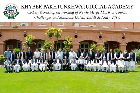 A two-day workshop on working of "Newly Merged Districts (NMD's) Courts: Challenges and Solutions" was held at Khyber Pakhtunkhwa Judicial Academy on 2nd and 3rd July, 2019. The workshop focused on challenges of judiciary in NMD's  and solution thereof. The workshop was conducted with the collaboration of Peshawar High Court Peshawar and UNDP.