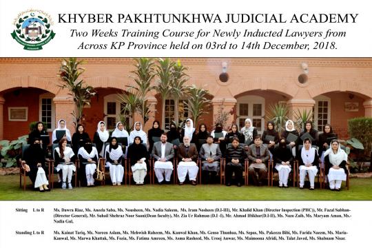 02 Weeks training for newly inducted lawyers from across the KP province held on 03-14 December, 2018