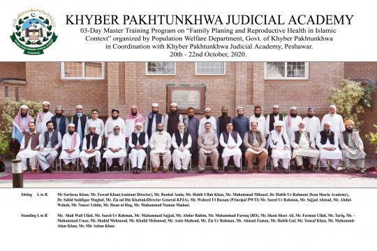 03-Day Master Training Program on "Family Planning and Reproductive Health in Islamic Context" organized by Population Welfare Department, Govt. of Khyber Pakhtunkhwa in Coordination with KPJA (20-22 October, 2020)
