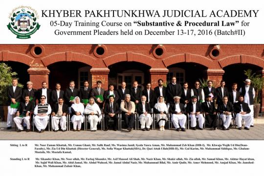 The second 05 day training on “Substantive and Procedural laws” for Senior Government pleaders, Government pleaders and Additional Government Pleaders of the Khyber Pakhtunkhwa Province was also successfully completed. The second training was held from 13th December to 17th December 2016. The objective of these trainings was the capacity building of the participants. A total number of 25 Government pleaders completed the training. Course for the training was designed by the Faculty of the Academy. Its main subjects included: The role of Ethics in Professional Conduct and Delivery of Service, Human Resource Management, Burden of Proof and Documentary Evidence, Conducting of Suits for and Against Government and much more.