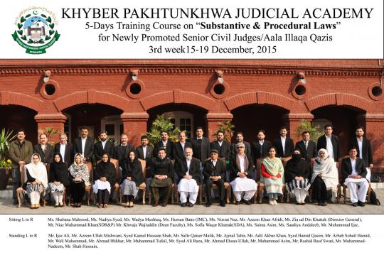 25 newly promoted senior civil judges from various districts of the province participated in the training. Director General KP Judicial Academy Mr. Zia-ud-din Khattak distributed certificates among participants in the concluding ceremoney.