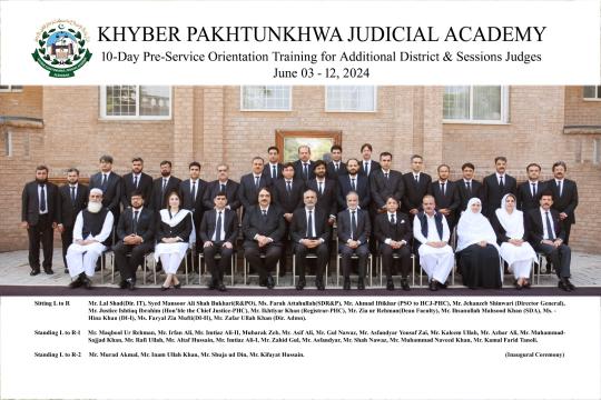 Ten-days pre-service training (PST) programme for newly appointed Additional District & Sessions Judges/ Izafi Zilla Qazis has commenced from 3rd June, 2024. Twenty-two newly inducted Additional District & Sessions Judges from across the province are participating in the training. This training is compulsory for probationers.