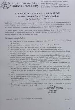 Advertisement: Enlistment/ Pre-Qualification of Vendors/ Suppliers for Food and Non-Food Items