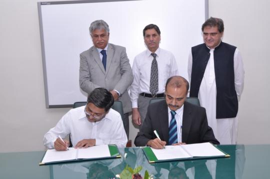 In a short span of two years of its existence, the KP Judicial Academy scored another great achievement today by signing Memorandum of Understanding (MoU) with three Universities: the Abdul Wali Khan University (Mardan), the University of Malakand (Chakdara) and the University of Hazara (Mansehra). Dr Khurshid Iqbal, Dean of Faculty signed the MoU along with Dr Zahoor-ul-Haq, Registrar, the Abdul Wali Khan University, Mr. Sher Bhadur Khan, Registrar, University of Malakand and Mr. Bakhtyar Muhmand, Registrar, Hazara University. Amidst applause of about two dozens people--mostly staff members of all the institutions, Dr Iqbal exchanged the documents with the Registrars, having a ceremonious handshake with each one of them, with the Director General of the Academy and Vice-Chancellors of the Universities standing in the background.
