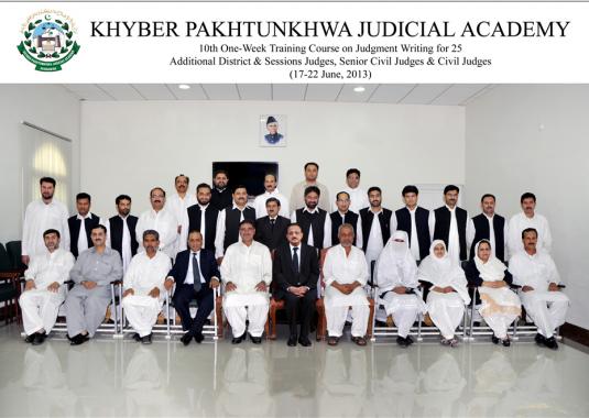 The concluding ceremony of the 10th Judgment Writing Training for Senior Civil Judges, Civil Judges and Judicial Magistrates at KP Judicial Academy Peshawar on 17-21, 2013. Senior civil judges and civil judges of different districts of KP participated in the training.