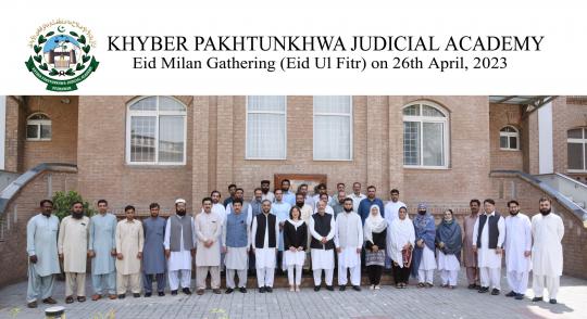 Eid –ul- Fitr is all about rejoicing and gratitude. In order to share the happiness with the faculty and staff members, a get-together was hosted on 26th April, 2023 by Ms. Farah Jamshed, Director General Khyber Pakhtunkhwa Judicial Academy. The Eid greetings were exchanged which were followed by refreshments. The faculty and the staff members expressed their gratitude to the Director General for the opportunity to celebrate the festival with everyone.