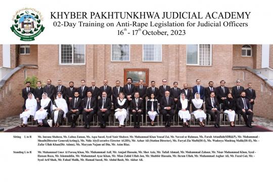 The Khyber Pakhtunkhwa Judicial Academy in collaboration with the Asma Jehangir Legal Aid Cell (AGHS), organized two-day training for twenty five (25) Additional District & Session judges across the Khyber Pakhtunkhwa Province on Anti-Rape legislation.