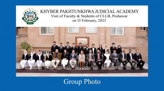 A delegation of twenty students of Centre for Learning Law and Business (CLLB) Peshawar visited Khyber Pakhtunkhwa Judicial Academy on February 15, 2023. Mr. Darmaan Nafees Shafi, Campus Director, Mr. Bilal Ahmad, Director of Communications and other faculty members of CLLB accompanied the group.