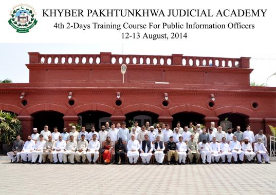 The KP Judicial Academy organized fourth session of 2-day (12-13 August, 2014) training for Public Information Officers (PIOs). The training was conducted on the request of the newly constituted Provincial Information Commission, KP. The PIOs are designated under the KP Right to Information Act, 2013. The batch consist of officers from Anti-corruption, District Administration, Public Health, Revenue, Water Management, Livestock department and Agriculture University .
