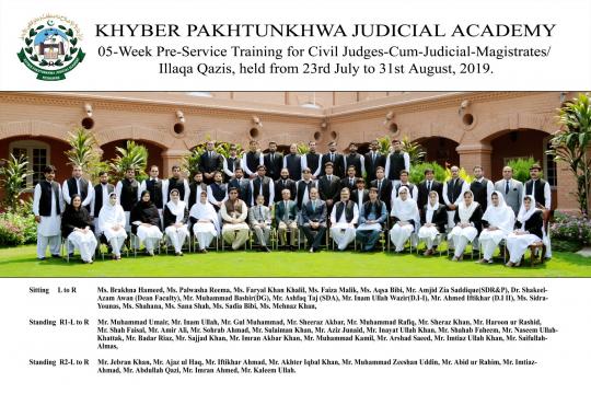 Group Photo: Pre-Service Training of Civil Judges-cum-Judicial Magistrates/Illaqa Qazis (2019) Concluded at KPJA on 31st August, 2019