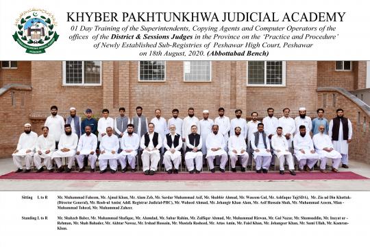 Group Photo of Training of the Superintendents, Copying Agents and Computer Operators of the Offices of the District & Sessions Judges in the Province on the ‘Practice and Procedure’ of Newly Established Sub-Registries of PHC, Abbottabad Bench, 18-8-2020