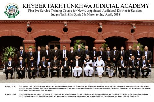 For the first time ever in the history of KP Judicial Academy, one month long (7th March to 2nd April, 2016) pre-service training course for newly appointed probationers Additional District & Sessions Judges/ Izafi Zilla Qazis was planned, designed and put into practice.  The training was designed keeping in view the job description of the probationers, practicalities involved in their functions and the likely impediments in the dispensation of justice. The focus areas also included the capacity building, professional competence, ethical standards with related skills and attitude.