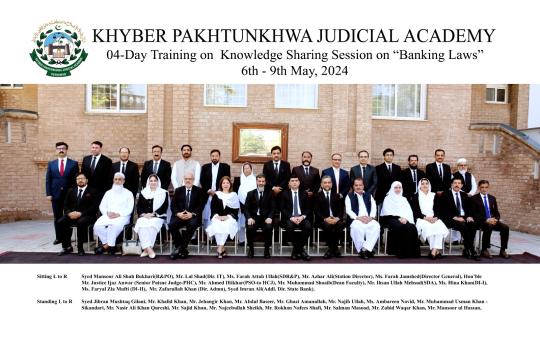 In collaboration with the State Bank of Pakistan, a 4-day “Knowledge Sharing Session” commenced at Khyber Pakhtunkhwa Judicial Academy, Peshawar with Judges of Banking Courts, Judge Special Court (Offences in Banks) Special Prosecutors, and lawyers dealing with cases under Banking Laws.