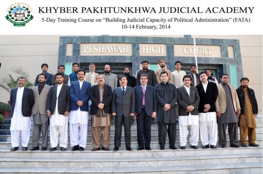 First 05-days training course for the political administration of FATA (Federally Administrated Tribal Areas) concluded today at KP Judicial Academy Peshawar.  The focus of the course was the Legal Framework, Sentencing guidelines, Pleading & issues, Legal & Communication Skills in Judgment Writing,  Key assorted proceedings: Superdari, charge, Challan, Human Rights with focus on Fair Trial, Process and maintenance of diary, Judicial record with focus on preparation/compilation, Execution of Decree, The human face of collective responsibility and Mock Court Trial. Assistant Political Agents, Political Tehsildars and Naib Political Tehsildar from Malakand Agency, Khyber Agency, Orakzai Agency, North Waziristan Agency, South Waziristan Agency, Bajaur Agency, Kurram Agency, FR Peshawar, Bannu, Kohat and D.I Khan participated in the course.