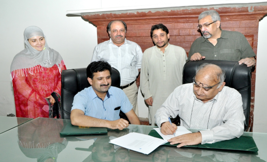 A Letter of Agreement between United Nation Development Program (UNDP) and KP Judicial Academy Peshawar for research study, Development of a software for law search index, capacity building of judicial officers, lawyers and courts staff under strengthening "Rule of Law " Program signed on 10th July 2017 at KP Judicial Academy Peshawar. This LOA is effective from 1st July, 2017 to 31st December, 2017. LOA signing ceremony was held at BOG Hall of the Academy and on behalf of Country Director, UNDP, Ignacio Artaza, Mr. Ijaz Ali singed and on behalf of KP Judicial academy, Director General, KPJA, Mr. Muhammad Masood Khan. The Senior Director Administration, KPJA, Mr. Muhammad Asif Khan, Dean Faculty, KPJA, Khawaja Wajihuddin, Director Instructions II, Mr. Zia ul Rehman and Director Instructions III Ms. Hajra Rahman were also present at the occasion.