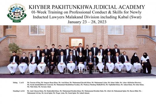 Khyber Pakhtunkhwa Judicial Academy Peshawar organized a week-long training program for lawyers from Malakand Division including Tehsil Kabal, Swat. The Training was attended by twenty-two (22) lawyers from the region.
