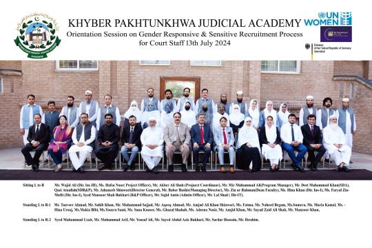 The Khyber Pakhtunkhwa Judicial Academy (KPJA), in collaboration with Rozan, a Non-Governmental Organization, arranged a One-Day Orientation Session on Gender Responsive & Sensitive Recruitment Process for Court Staff on July 13, 2024.