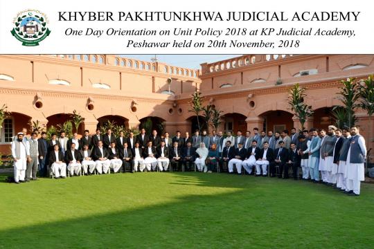 One Day Orientation on Unit Policy (Peshawar High Court) for Judicial Officers and Computer Operators held on 20th November, 2018