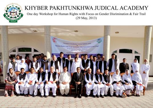 A one-day workshop was held on the "Human Rights with focus on Fair trial in litigation and Women Rights - Islamic Perspective" at KP Judicial Academy Peshawar on May 30, 2013 . In this workshop district and session judges, additional district and session judges, senior civil judges and civil judges of different districts of KP participated.