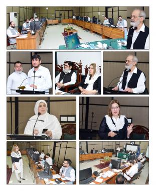 Pre-training evaluation of the participants was conducted by Muhammad Faiz, external evaluator from PHC. This was followed by lecture on Professional Ethics and Code of Conduct delivered by Dean Faculty Ms. Farah Jamshed. Ms. Irum Nosheen sensitized the participants on techniques and basic rules of precis writing with special focus on court work. This was followed by practical exercise regarding Fact Writing on the guiding principles highlighted by Ms. Irum Nosheen. Participants were provided sample copy of FIR, murasila and Madd report for reproducing the facts in a concise manner as practiced during court proceedings.