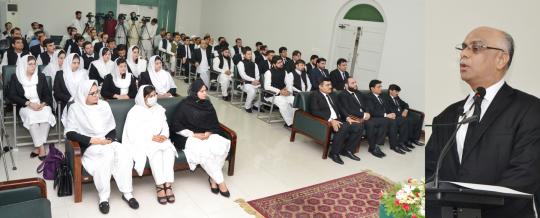 Hon'ble the Chief Justice, Peshawar High Court Peshawar (PHC), Mr. Justice Waqar Ahmad Seith was the Chief Guest at a simple but graceful concluding ceremony. It was attended by Khawaja Wajihuddin, Registrar Peshawar High Court, Mr. Muhammad Zeb Khan, PSO to Chief Justice Peshawar High Court, Mr. Muhammad Bashir, the Director General of the Academy, Dr. Shakeel Azam Awan, Dean faculty, Mr. Ashfaque Taj, Senior Director Admin, Mr. Amjad Zia Siddiqui, Senior Director Research & Publication, Mr. Inamullah Wazir, Director Instruction-I and Mr. Ahmed Iftikhar, Director Instruction-II. The parents of some of the newly-recruited Civil Judges also attended it.