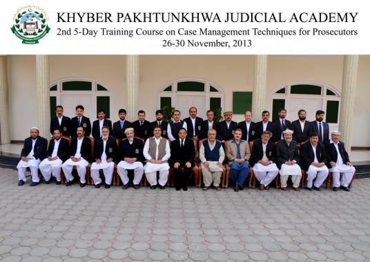 The second 5-day training course of prosecutors concluded today (30 Nov. 2013). The main focus of the course was on the prosecutorial aspects of case management. As many as 25 prosecutors from across the province participated in the course. Due representation was given to prosecutors from Malakand as the course is part of the UNDP’s Strengthening the Rule of Law in Malakand (SRLM) project. In the conclusion ceremony, the participants shared their feedback with the Academy through their representative. The participants also expressed their thanks for their nomination. Justice Mian Fasih-ul-Mulk, senior Puisne Judge of Peshawar High Court was the chief guest. His lordship distributed certificates among the participants and addressed the gathering. Mr. Hayat Ali Shah, Director General of the Academy also spoke on the occasion. The next training course on the same subject is scheduled for 03 December, 2013.