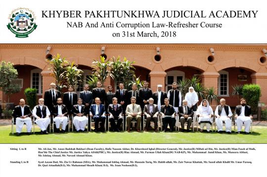 The Academy organized one day Refresher Course for hon’ble of Judges Accountability Courts & Prosecutors of National Accountability Bureau (NAB), the Khyber Pakhtunkhwa. The Resource Persons for the training were: Mr. Justice (R) Riaz Ahmad Khan. Mr. Justice (R) Mian Fasih ul Mulk, and Mr. Justice (R) Miftah-ud-Din. In the first session, hon’ble the Chief Justice, Peshawar High Court, participated. The Director General, NAB, KP, also participated in the training course. Mr. Justice (R) Mian Fasih ul Mulk distributed certificates amongst the participants.