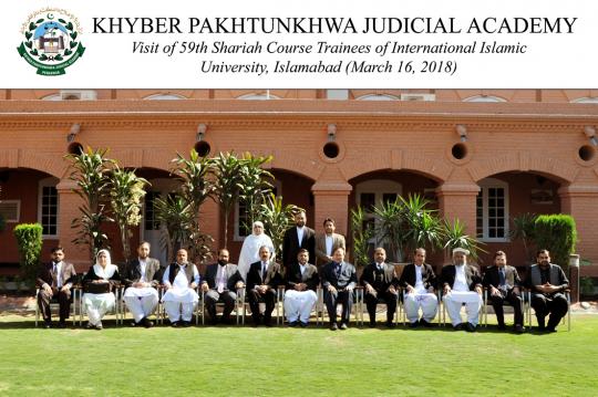 Trainees of 59th Shariah (Islamic Law) Course organized by Islamic International Islamic University Islamabad (IIUI), Shariah Academy, visited KPJA on March 16, 2018. The Director General Khyber Pakhtunkhwa Judicial Academy welcomed the participants and briefed them on activities of Academy.