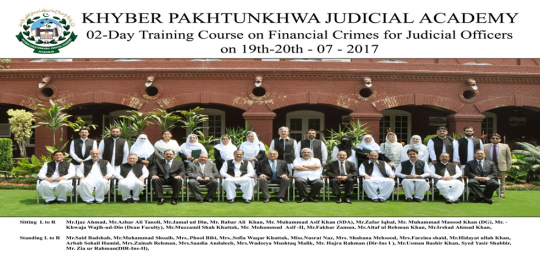 Two days(19th and 20th July, 2017) training course on Financial Crimes for Judicial officers was held at KP Judicial Academy Peshawar. Twenty five Judicial officers (6 District and Session Judges and 19 Additional District and Session Judges) across the province of Khyber Pakhtunkhwa participated in the Training course.