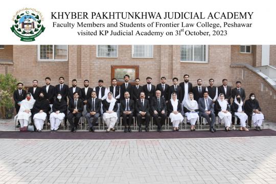 Following its tradition, a delegation of students of 10th Semester of the Frontier Law College, Peshawar, visited the Khyber Pakhtunkhwa Judicial Academy on 31st October, 2023. Mr. Akhtar Ali Khan, the founder and Director of the college, and faculty members of the college accompanied the delegation.