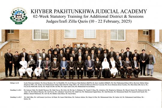Today, on Feburary 22, 2025, a 02-week Statutory Training for 35 Additional District and Sessions Judges/ Izafi Zilla Qazis concluded in the Khyber Pakhtunkhwa Judicial Academy (KPJA), Peshawar.