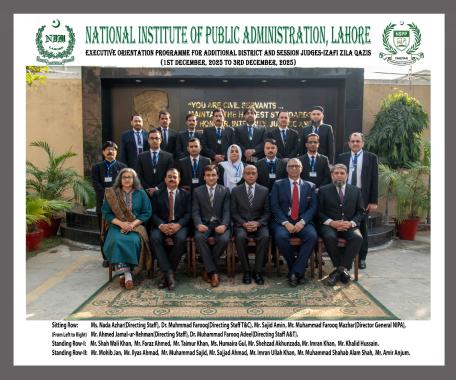 As part of the 08 Weeks Pre-Service Training for Additional District & Sessions Judges / Izafi Zilla Qazis, the trainee judicial officers of the Khyber Pakhtunkhwa Judicial Academy attended a three-day Executive Orientation Programme at the National Institute of Public Administration (NIPA), Lahore from 1–3 December 2025.