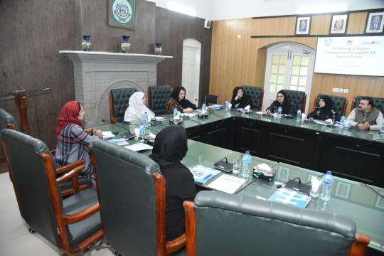 Participants engaged in thematic group discussions focused on refining the Vision, Mission, and Objectives of the revised policy, followed by a dedicated review of its legal and institutional components. Ms. Umm-e-Kalsoom from UN Women facilitated and guided the deliberations. Ms. Ayesha Bano Ex MPA/Technocrat Member Subcommittee WEP Women Commission wrap up the Session with her closing remarks.