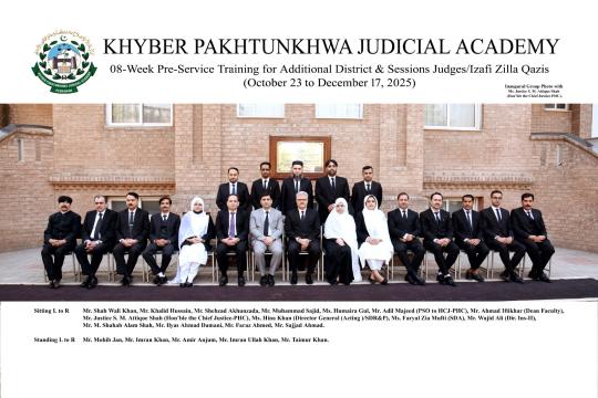 The Khyber Pakhtunkhwa Judicial Academy (KPJA) successfully concluded the 08 Weeks Pre-Service Training Programme for Additional District & Sessions Judges / Izafi Zilla Qazis, held from October 23 to December 17, 2025. The training was designed to enhance professional competence, judicial ethics, and practical skills of newly inducted judicial officers.