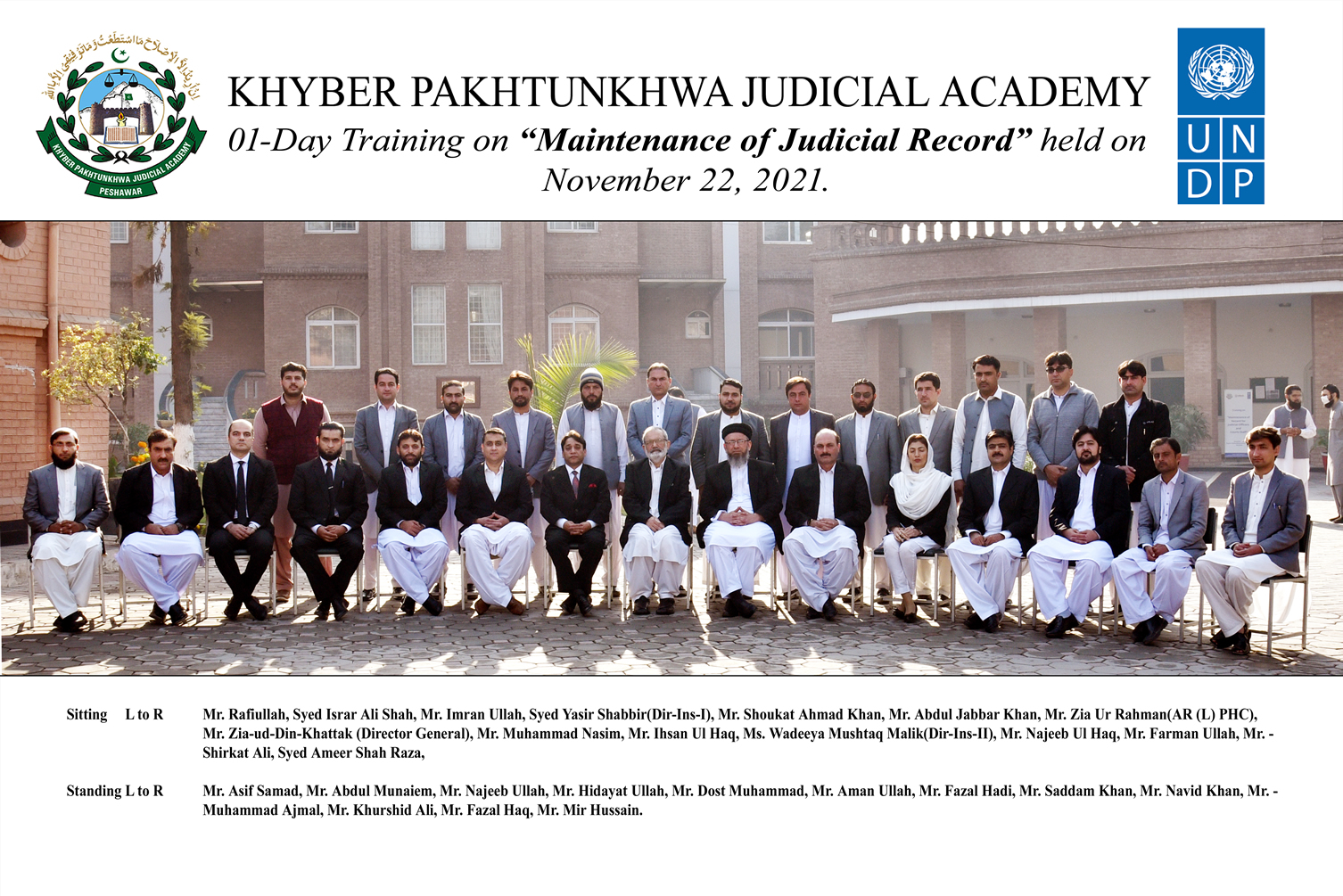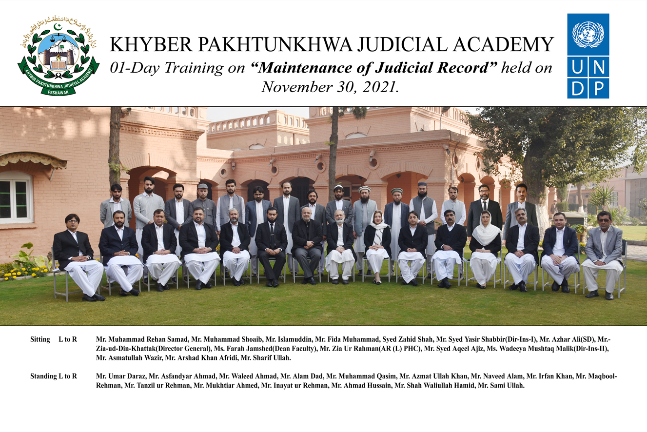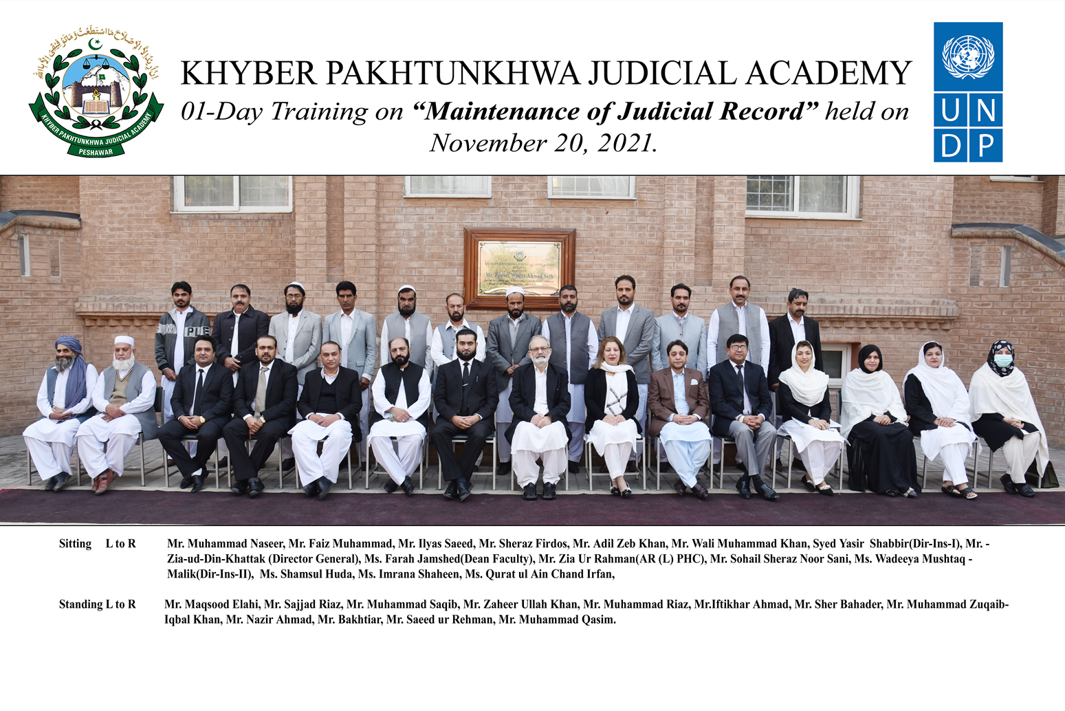 01-Day Training on ‘Maintenance of Record’ for Officers & Staff of District Judiciary at Khyber Pakhtunkhwa Judicial Academy