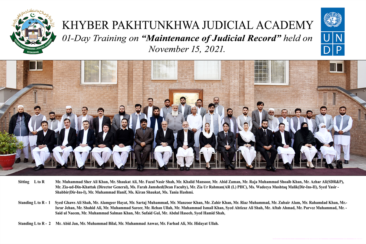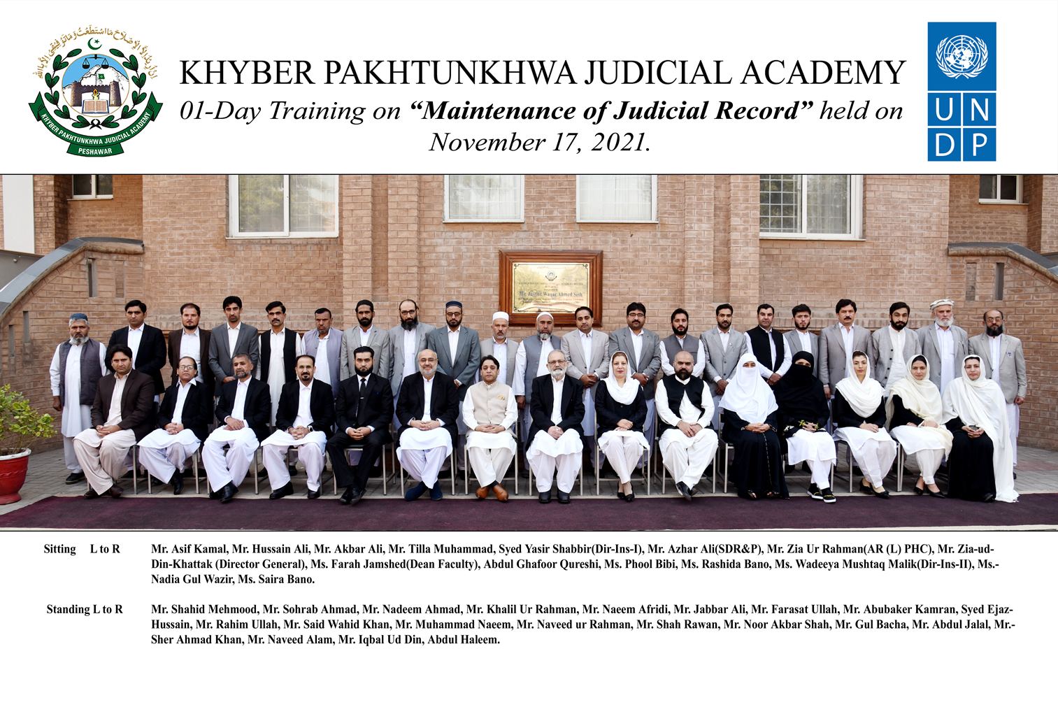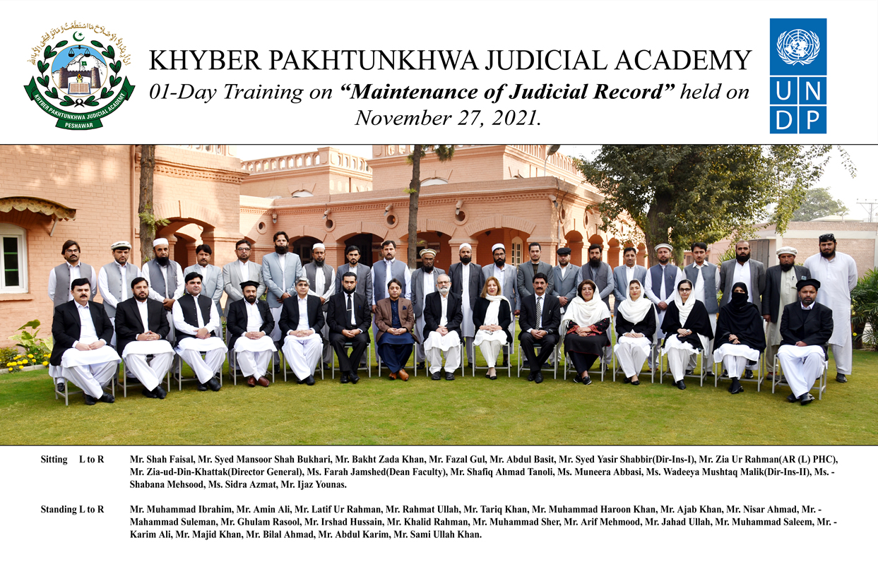 01-Day Training on ‘Maintenance of Record’ for Officers & Staff of District Judiciary at Khyber Pakhtunkhwa Judicial Academy