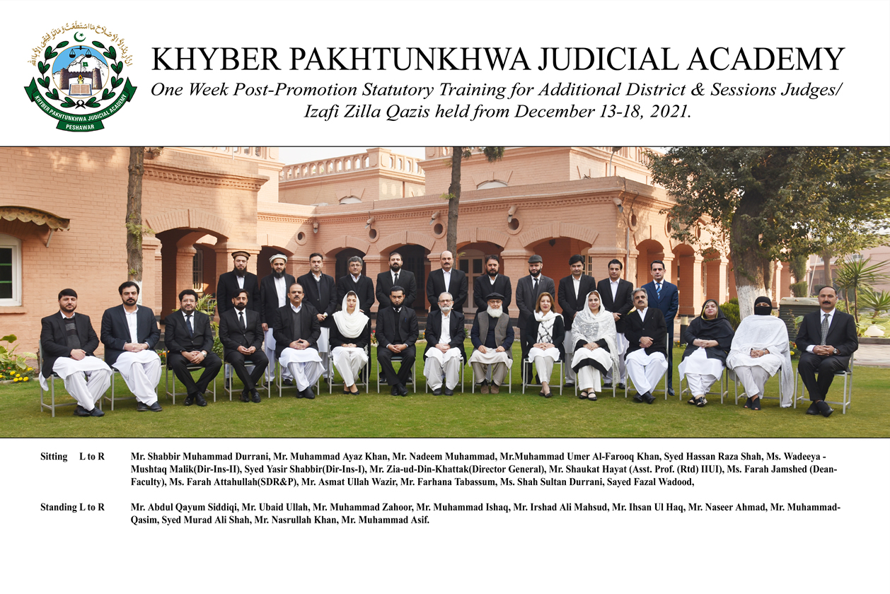 One Week Post-Promotion Statutory Training for Additional District & Sessions Judges/ Izafi Zilla Qazis (13-18 December 2021)