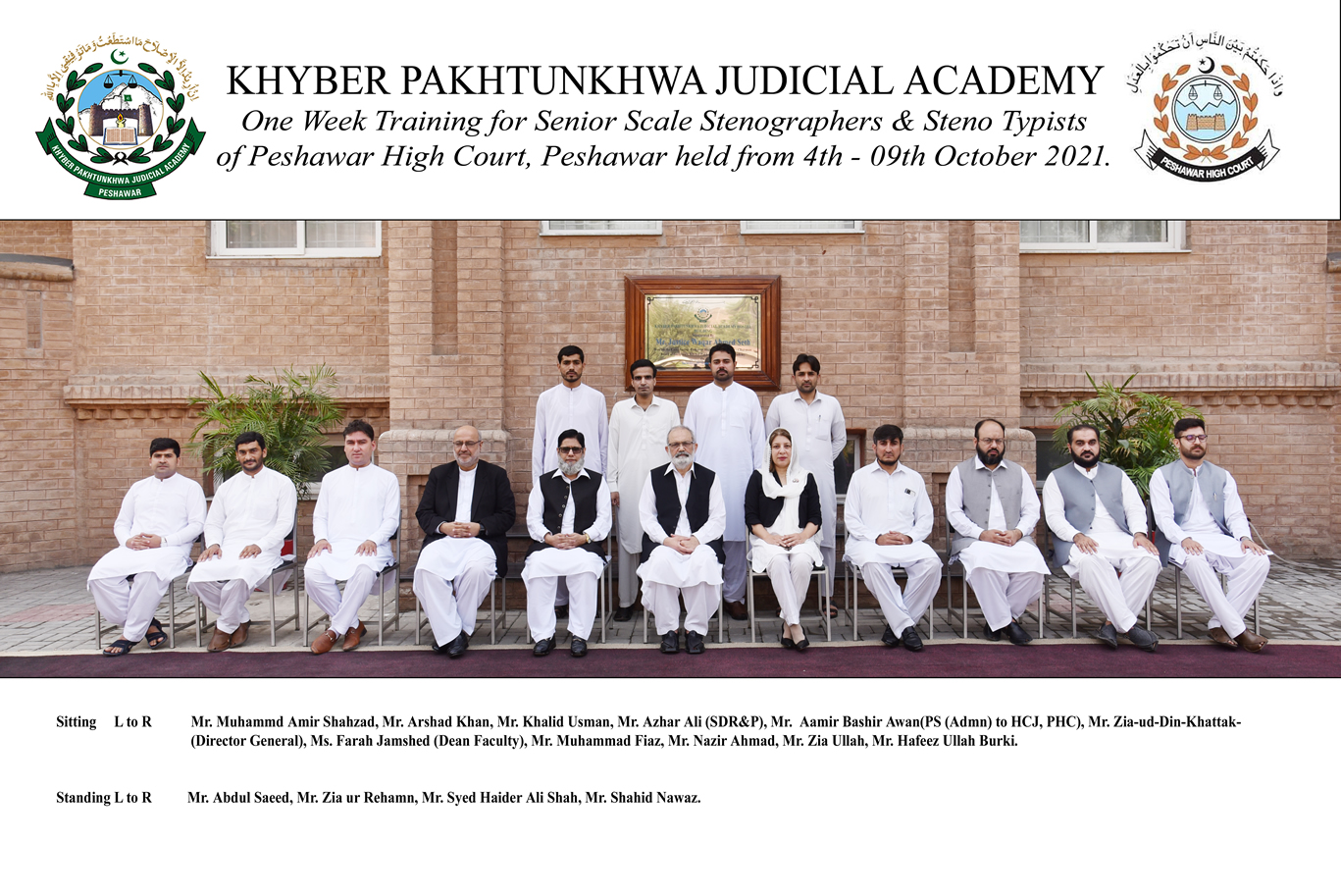 ONE WEEK TRAINING FOR SENIOR SCALE STENOGRAPHERS & STENO TYPISTS OF PESHAWAR HIGH COURT, PESHAWAR.(4th - 9th October 2021)