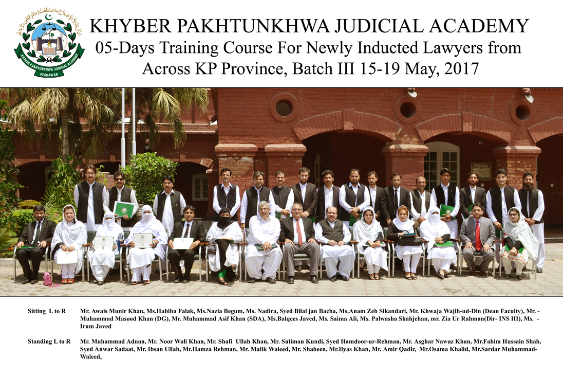 01 Week Training for newly inducted Lawyers from across KP Province, Batch-III from 15 to 19 May, 2017
