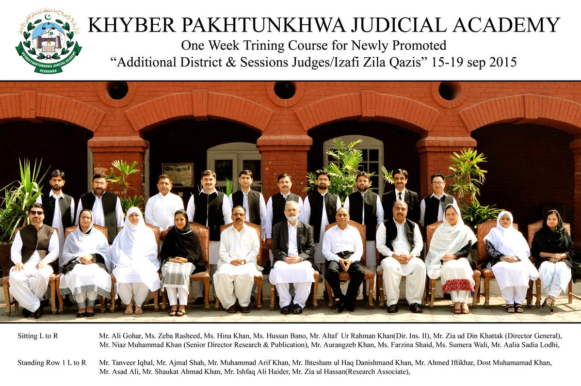 One week training course for newly promoted Additional District & Session Judges / Izafi Zilla Qazes 15th - 19th September 2015