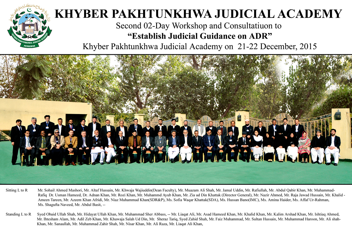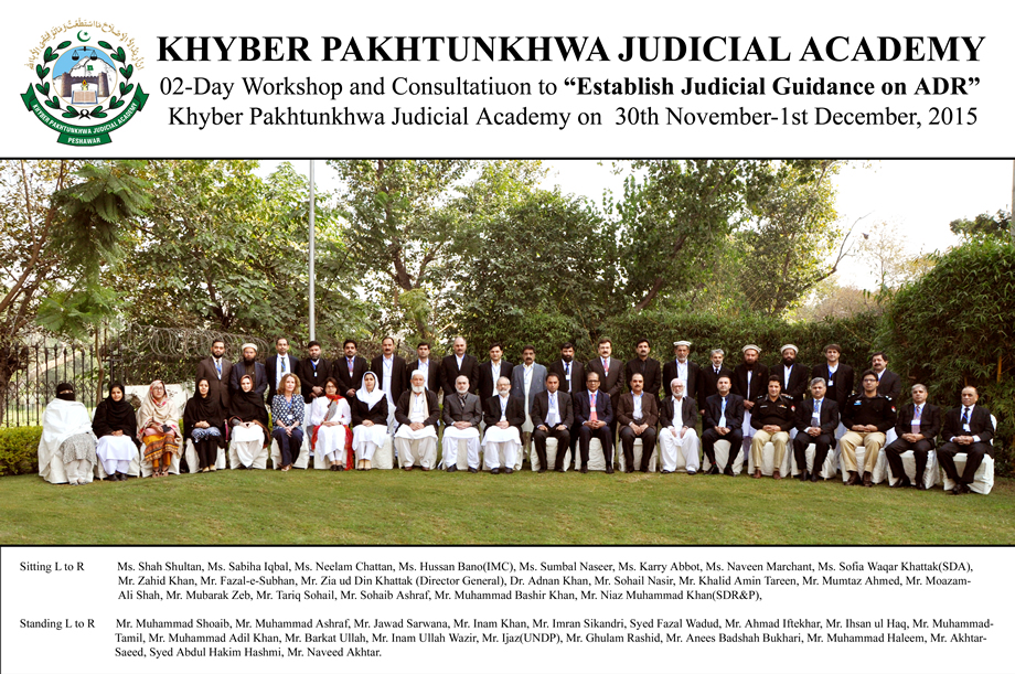 02-Day Workshop and Consultation to “Establish Judicial Guidance on ADR” organized by KPJA & UNDP at PC Hotel Peshawar from 30th Nov to 1st Dec, 2015