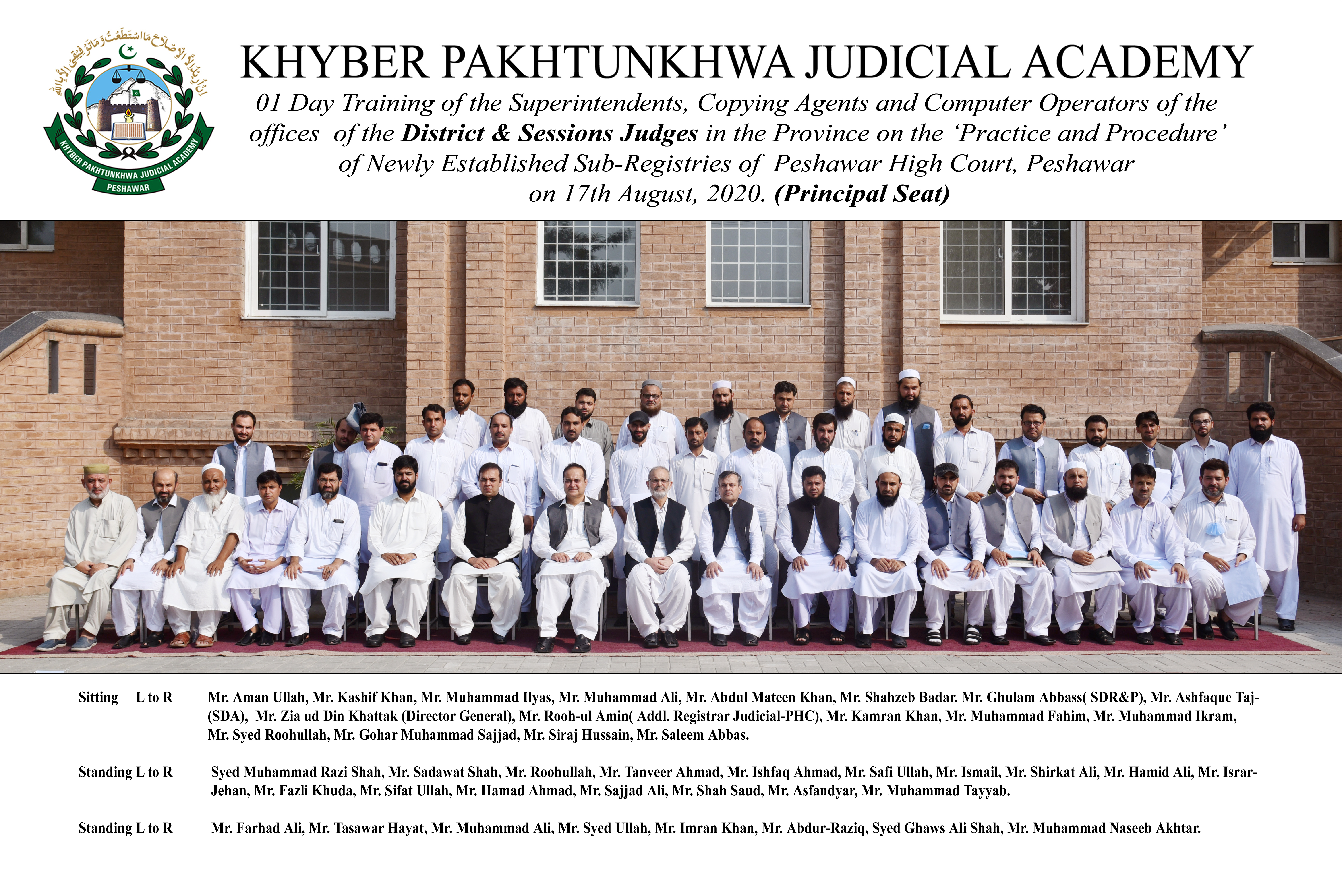 Group Photo of Training of the Superintendents, Copying Agents and Computer Operators of the Offices of the District & Sessions Judges in the Province on the ‘Practice and Procedure’ of Newly Established Sub-Registries of PHC, Principal Seat, 17-8-2020