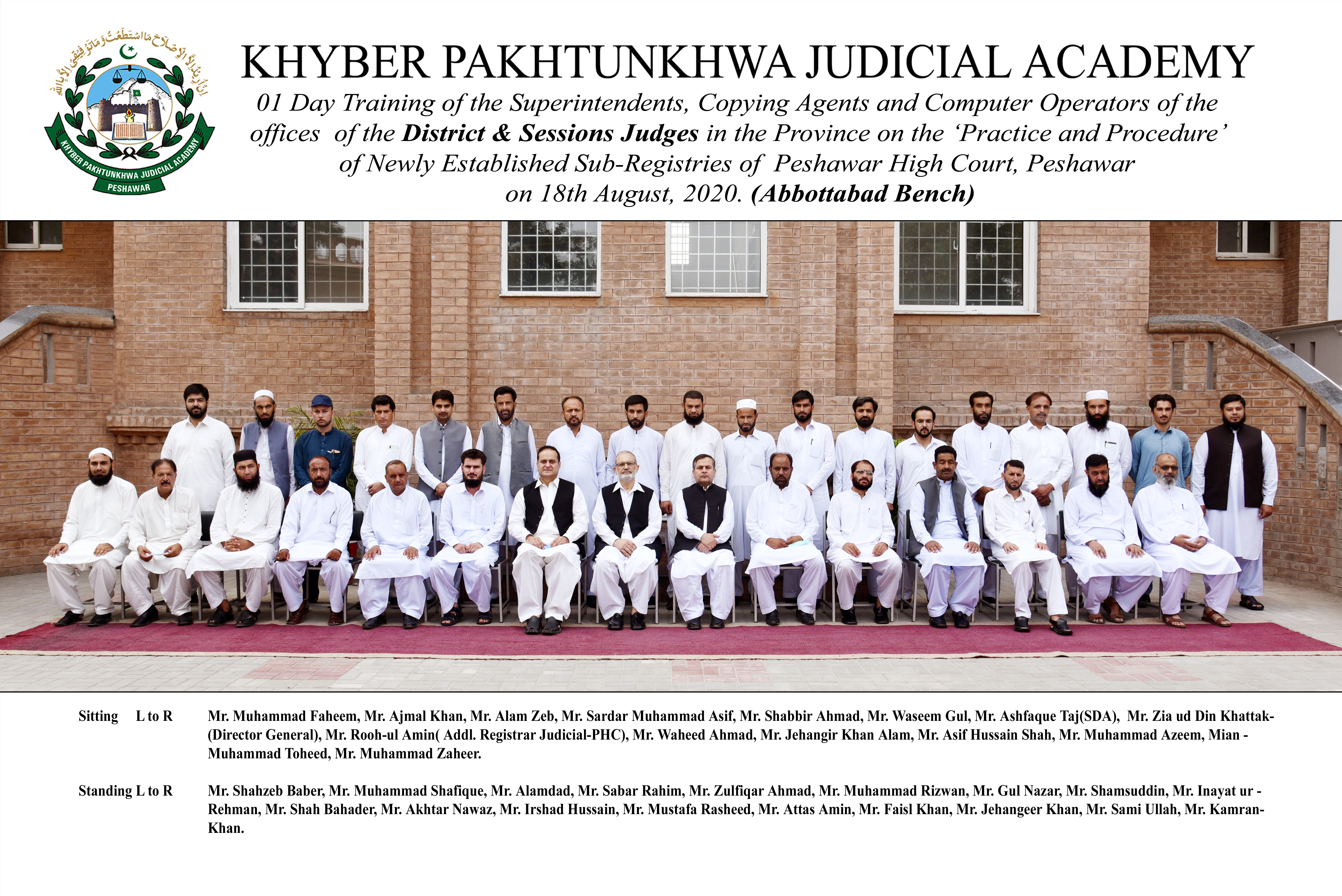 Group Photo of Training of the Superintendents, Copying Agents and Computer Operators of the Offices of the District & Sessions Judges in the Province on the ‘Practice and Procedure’ of Newly Established Sub-Registries of PHC, Abbottabad Bench, 18-8-2020